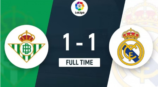 全場比賽結(jié)束,皇馬1-1貝蒂斯。
