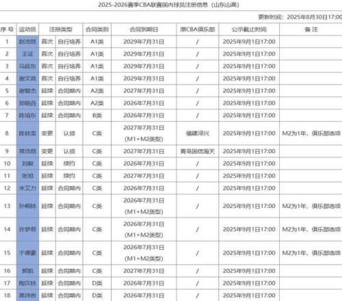 CBA注冊更新!同曦山東滿員,王嵐嵚租借剩2年,四川仍無動靜!