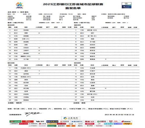 首發(fā)陣容公布!黃紫昌“蘇超”首秀